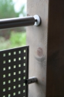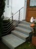 • Pfosten aus Quadratrohrprofil 40x40x3 mm, mit oberer Aufnahme für Edelstahlhandlaufstifte, über Anschraubplatten seitlich an Betontreppenstufen befestigt• Handlauf aus Edelstahl-Quadratprofilrohr 40x40x2 mm, Enden geschlossen, 1 x abgewinkelt und dem Treppenverlauf angepaßt• Füllungsfelder aus beidseitigem Rahmen aus Winkelprofilen 20x3 mm, mit Abstandshaltern• Füllungen aus 1.5 mm starken Stahl-Strukturblechen, davon 1 Füllung schräg angeschnitten• Pfosten, Füllungsrahmen und Füllungen feuerverzinkt und pulverbeschichtet