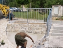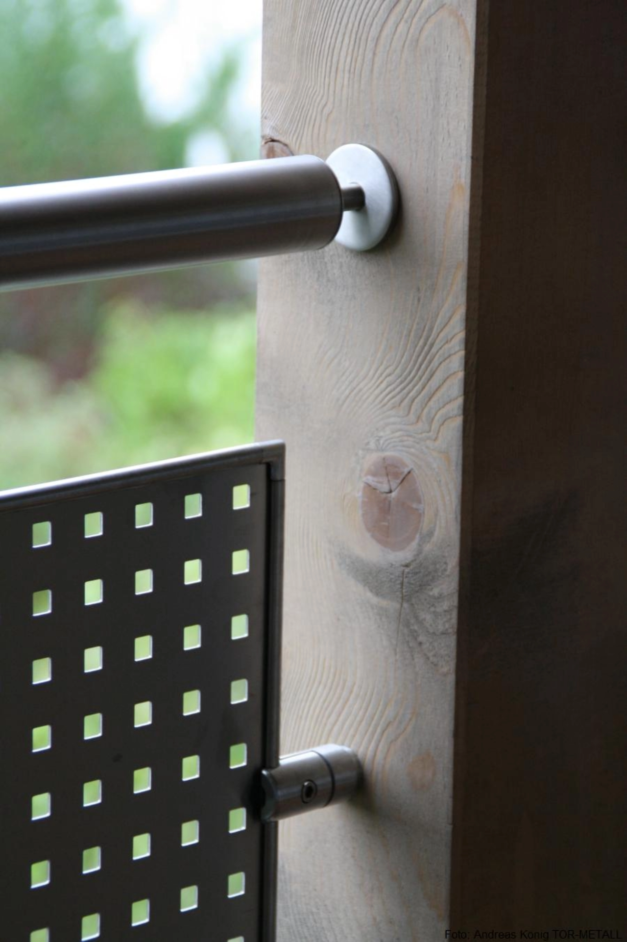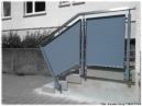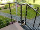 • Rundrohrpfosten durch Fußpunkthalterungen aufgedübelt• Füllung mit eingeschweißten Rundstahlstäben• Handlauf in Pfosten eingearbeitet und verschweißt• Treppenabgang dem Verlauf angepaßt• komplett feuerverzinkt