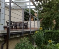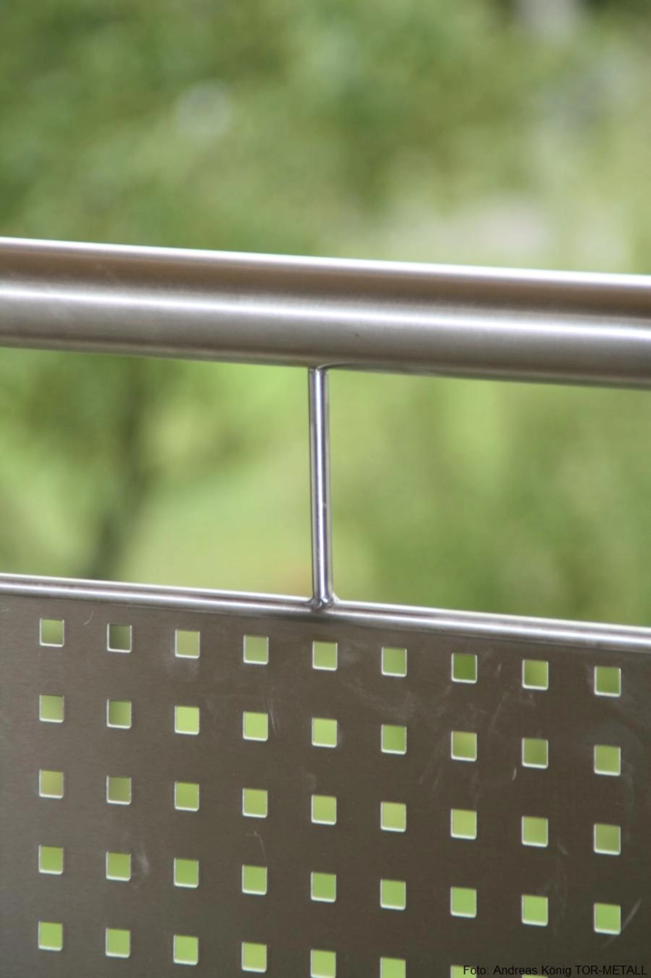 Terassengeländer 1.OG:• 14 Pfosten aus Edelstahl-Quadratrohrprofilen, mit Edelstahl-Handlaufaufnahmen und eingeschraubten Edelstahl-Glasklemmhaltern• aufgesetzter Handlauf aus Edelstahlrundrohr• Füllungen aus satiniertem Glas VSG 10 mm, Kanten poliert• alle Stahlteile aus Edelstahl 1.4301 und Edelstahl 1.4305• Handlaufhöhe ca. 1,1 m• Handlauflänge ca. 15,0 mBalkongeländer 2. OG:• seitlich und vorderseitig mit Stahl-Lochblechfüllung• vorderseitig mittig mit Glasfüllung• oben auf vorhandene Holzbalken aufgesetzter Handlauf aus Edelstahl-Rundrohr, Hirnholzfllächen durch Edelstahlabdeckkappen geschützt; zwischen vorhandenen Holzbalken Handlauf geschraubt• Füllung aus Lochblechen mit Quadratlochung, eingefaßt in Rundprofilen, zwischen den Pfosten eingeschraubt• mittlere Füllung aus satiniertem Glas VSG 10 mm, Kanten poliert, über Glasklemmhalter zwischen vorhandene Balken geschraubt• alle Stahlteile aus Edelstahl 1.4301 und Edelstahl 1.4305• Handlaufhöhe ca. 1,1 m • Handlauflänge ca. 7,8 m