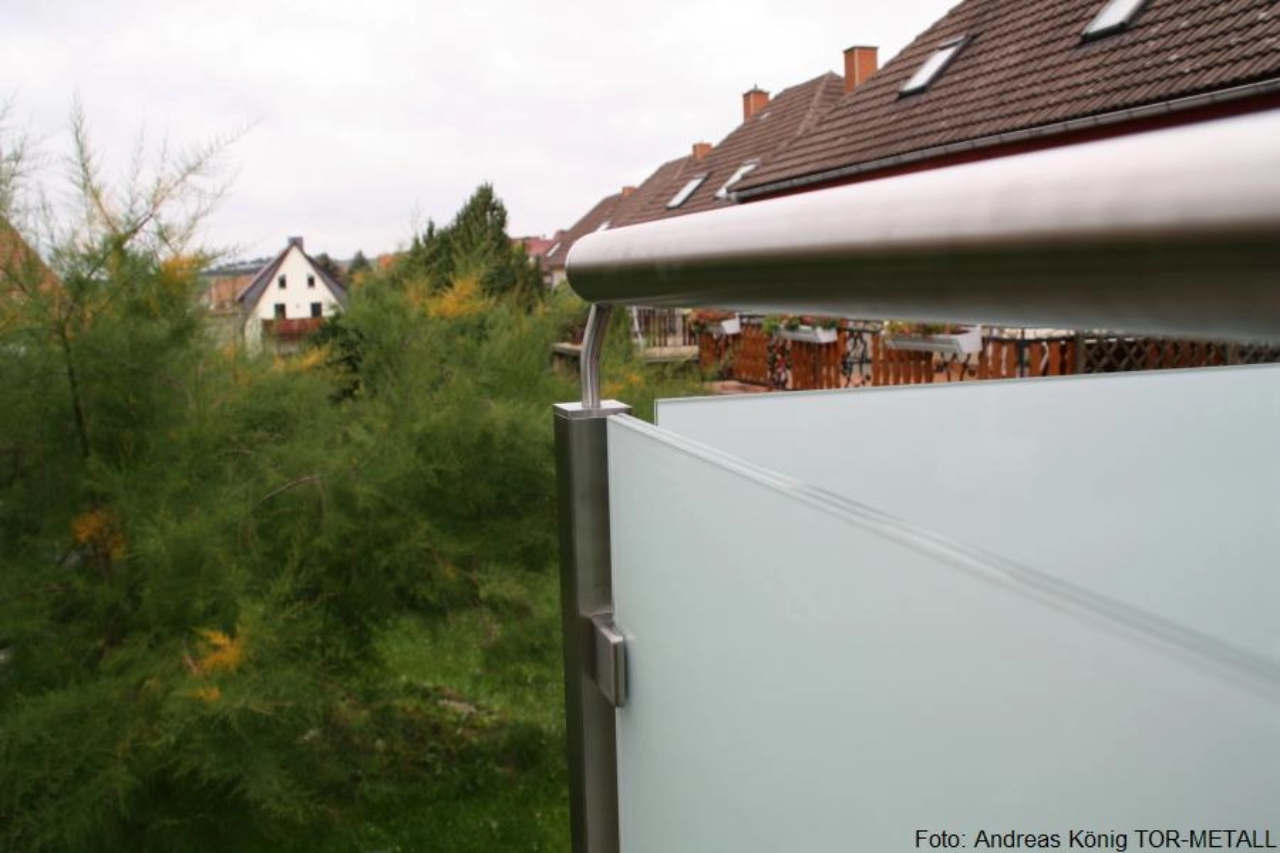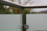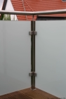 • Pfosten aus Stahlrundrohr d=42.2 mm mit Glasklemmhaltern für Verbundsicherheitsverglasung• oberer Pfostenabschluß mit Abschlußkappen mit Kugeln aus Vollmaterial d=40mm• untere Glasklemmhalter mit Sicherungsplatte• 2 Pfosten mit Anschraubplatten zur seitlichen Montage an Steinterasse• 6 Stück Pfosten vorbereitet für Montage an Brüstungsmauer /Treppenabgang• Verbundsicherheitsverglasungen aus 2 x 4mm ESG mit Folieneinlage matt, Scheibenstärke 8.76 mm, 4 Kanten poliert• Pfosten feuerverzinkt und beschichtet mit WS-Plast-Dickschicht• Drehtür ca. 0.85 m breit, als Rahmen verschweißt mit innenliegenden Glasklemmhaltern und Anschweißbändern am zusätzlichen Pfosten• Höhe ca. 1,0 m