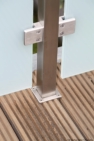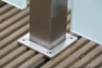 • Pfosten aus Stahl in Doppelschwertbauweise, feuerverzinkt und mit WS-Plast-Dickschicht in Eisenglimmer beschichtet, mit stirnseitiger Terassenbefestigung• mit Relinghaltern für Füllungsaufnahme und nach innen gekröpften Handlaufaufnahmen• Füllungen mit je 5 Stück Edelstahl-Rundstäben d=12 mm• nach innen gekröpfter Handlauf aus Edelstahlrundrohr• Handlauflänge ca. 14,7 m