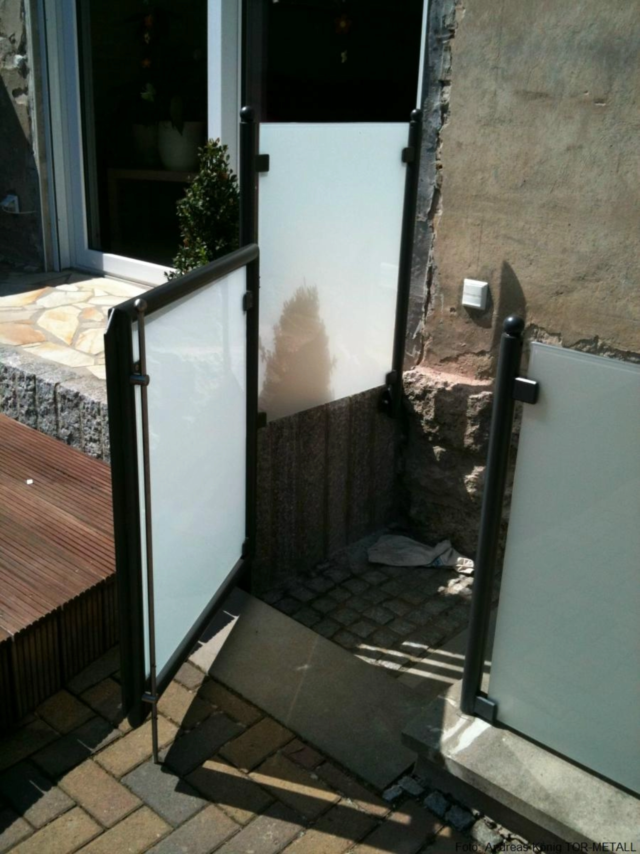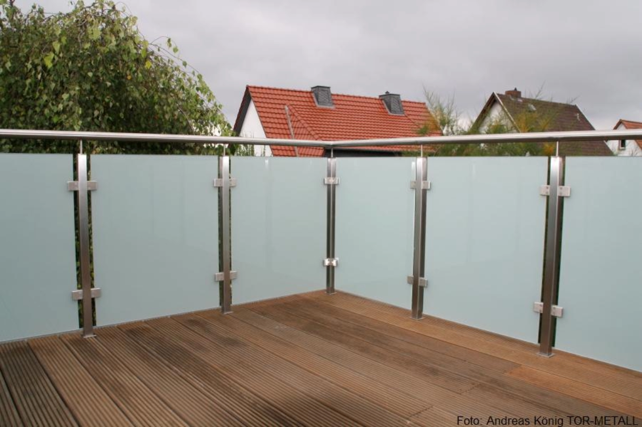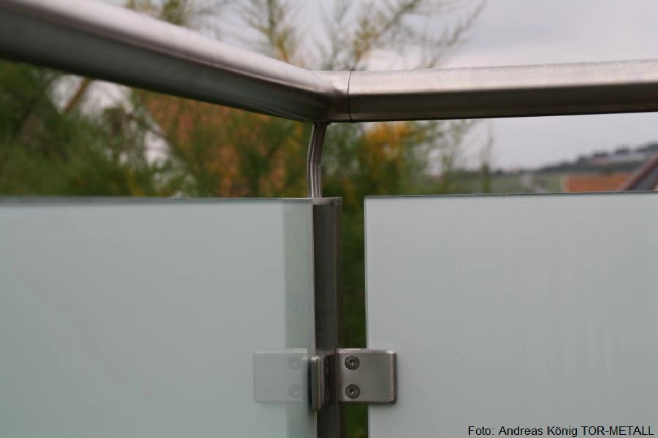 Geländer mit vollflächiger Glasfüllung und Tür